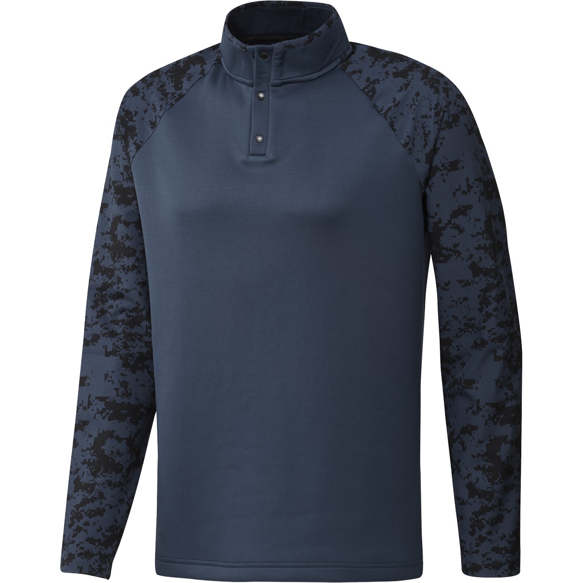 Layer up and play through in chilly weather. This adidas golf sweatshirt is made with a hybrid construction that keeps your core warm while lightweight material on the arms lets you swing freely. Camo details add modern flair.