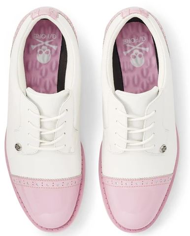 As stylish as it is comfortable, the Cap Toe Gallivanter golf shoe combines an athletic fit with premium waterproof leather in signature g/fore colourways. This style features a patent leather toe and heel cap with classic broguing & pinking. Custom designed by G/FORE’s team of footwear experts, the cap toe boasts an ultra lightweight sole coupled with a bespoke cleat design for optimal on-course traction. This shoe sports a washable and anti-microbial, triple density foam cushion footbed for superior comfort along with comfort system technology which allows airflow to feet and provides the ultimate massage for your soles.
