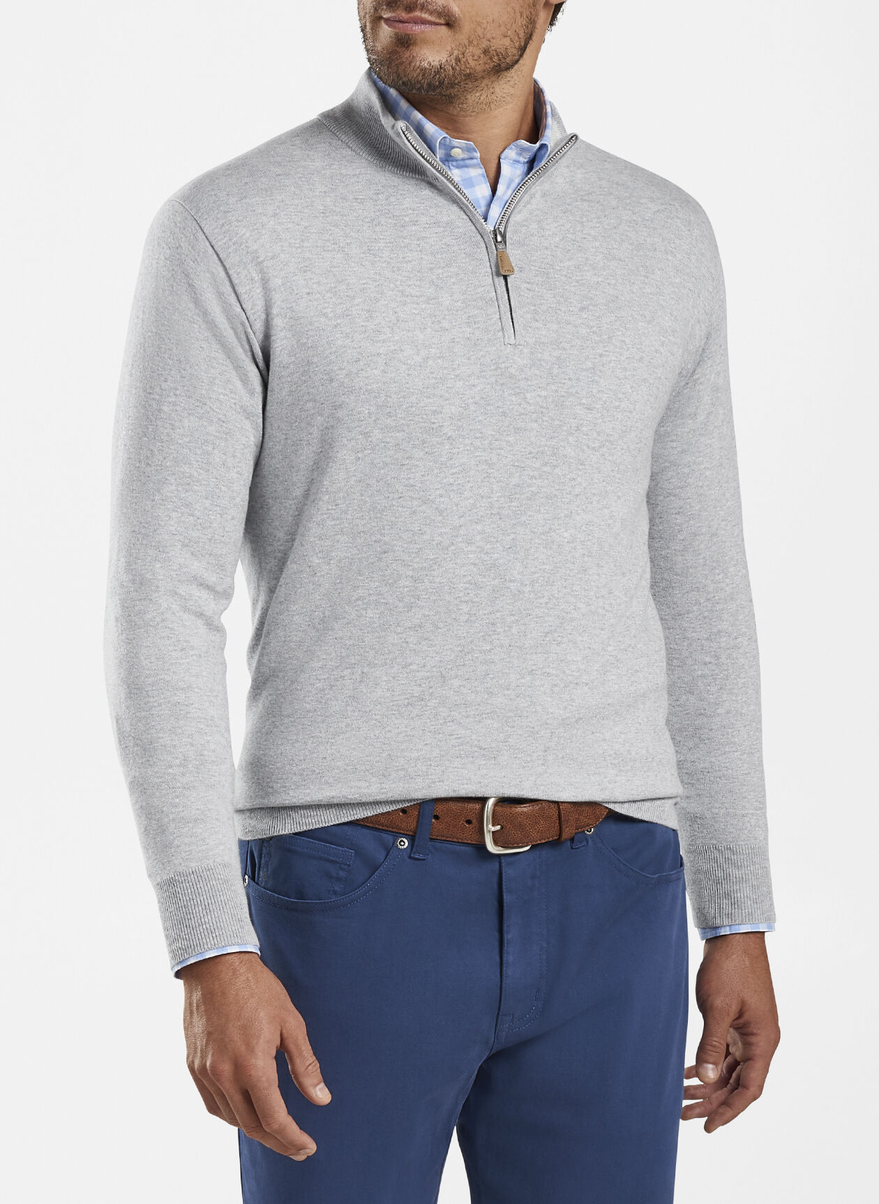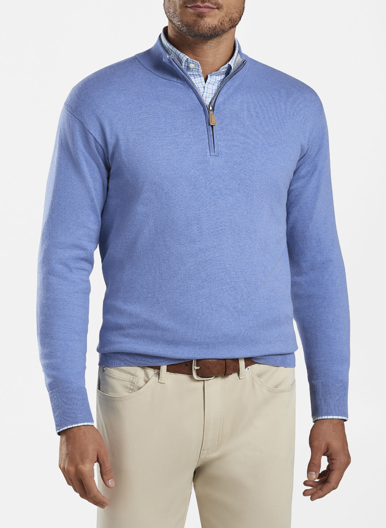 Striking a perfect balance between casual and sophisticated, this Crown Soft quarter-zip is made from an exceptionally soft, lightweight blend of pima cotton, silk and cashmere. A hint of performance yarn works to reduce wrinkles and maintain shape. Finished with a contrast interior collar and rib-knit cuffs and hem. Layer over Peter Millar Sport Shirts for a complete look.