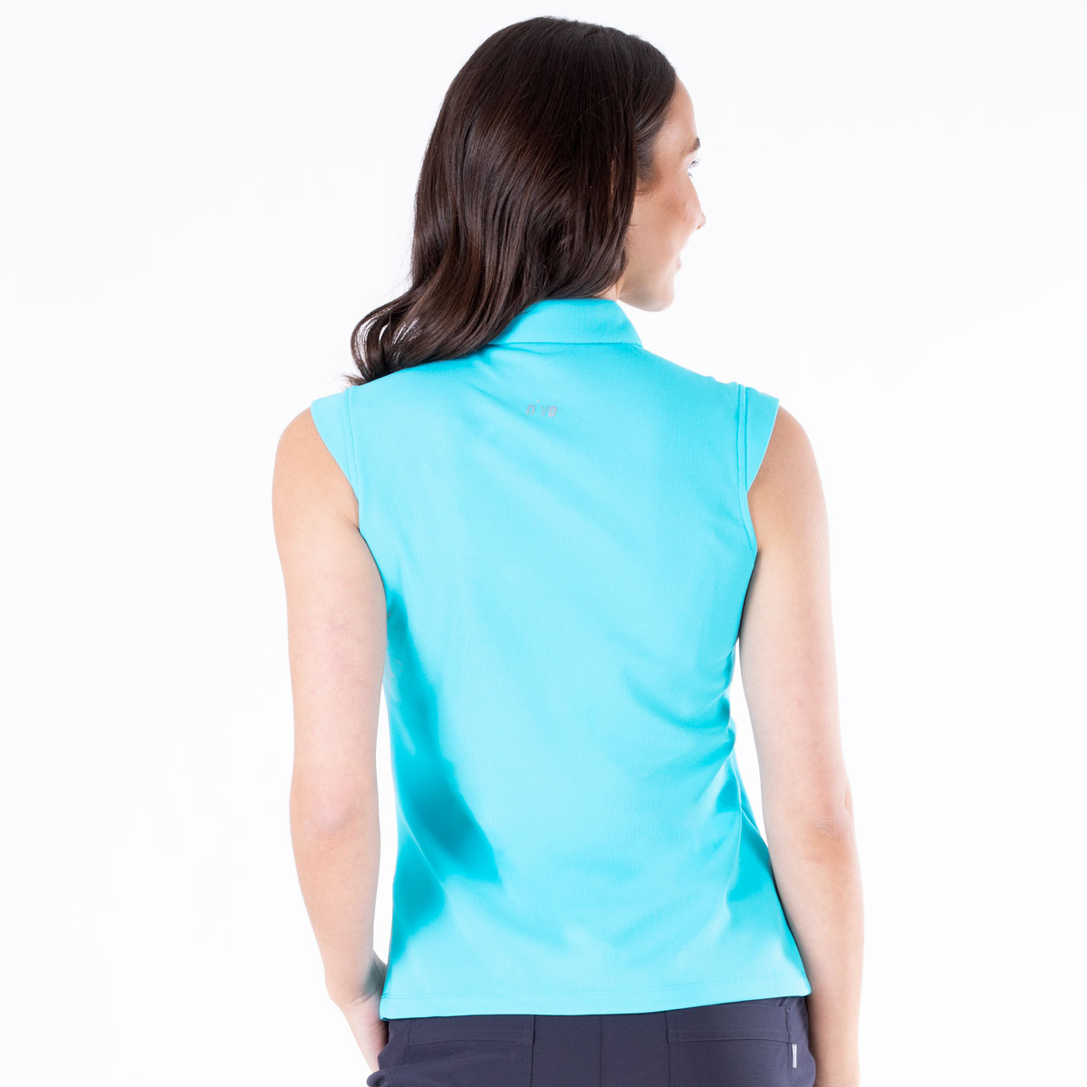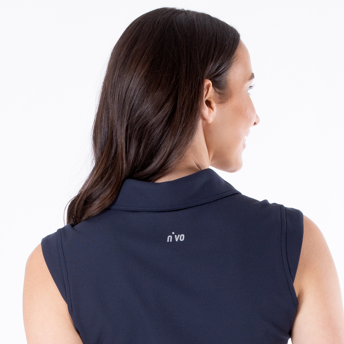 Feminine lines and comfort come together in this NIVO essential sleeveless polo top. It’s the perfect style to wear out on the golf course.