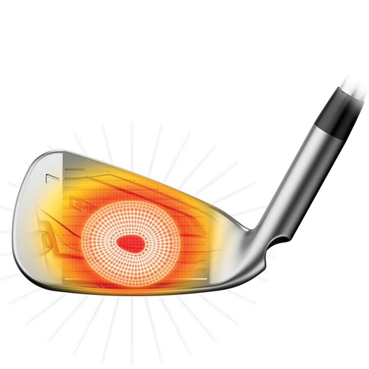 The metal-wood-style, variable-thickness face and internal geometry increase ball speed and flexing for launching shots higher and farther with stopping power to hold greens. Expanded perimeter weighting in this smaller head design sets a new standard in forgiveness for an iron its size. Available in 5-9, PA.