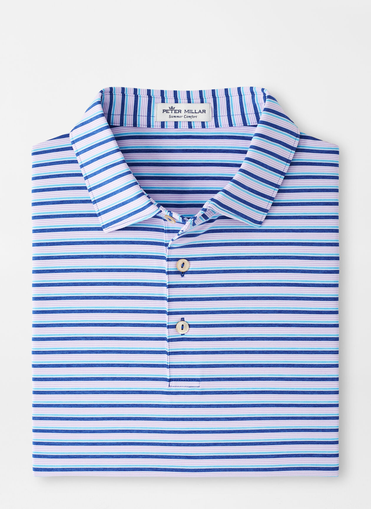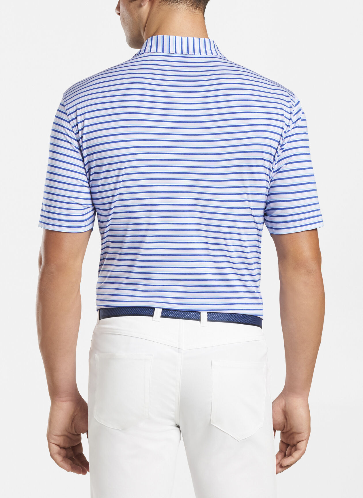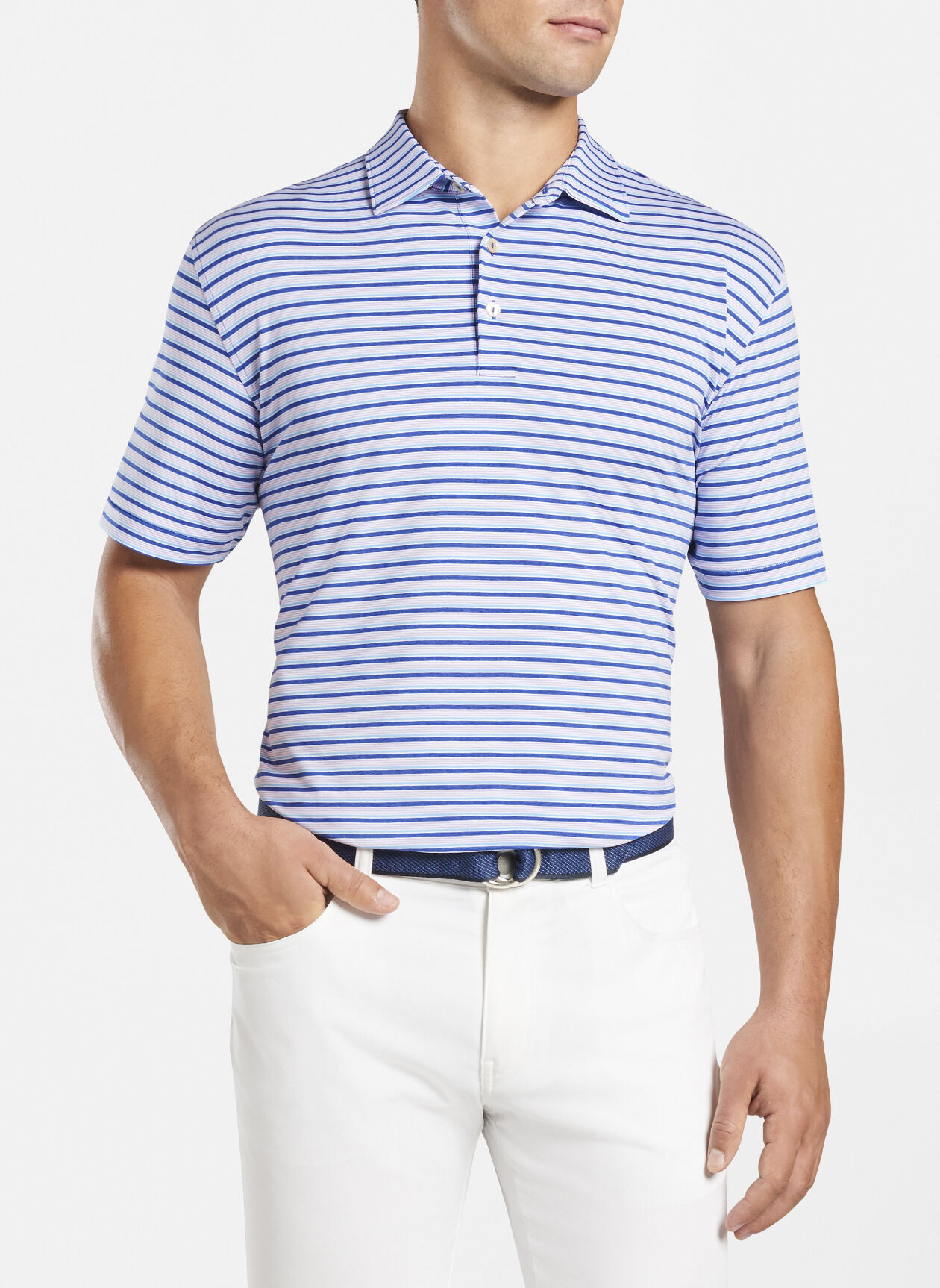 This polo offers sharp style and technical performance that make it a staple in any wardrobe. It’s constructed using a lightweight, easy-care jersey fabric that wicks moisture and stretches four ways for optimal mobility on and off the course. Innovative UPF 50+ sun protection delivers added coverage for long days spent outside. Styled with a classic stripe design for added visual appeal. Finished with a Sean self-fabric collar and three-button placket.