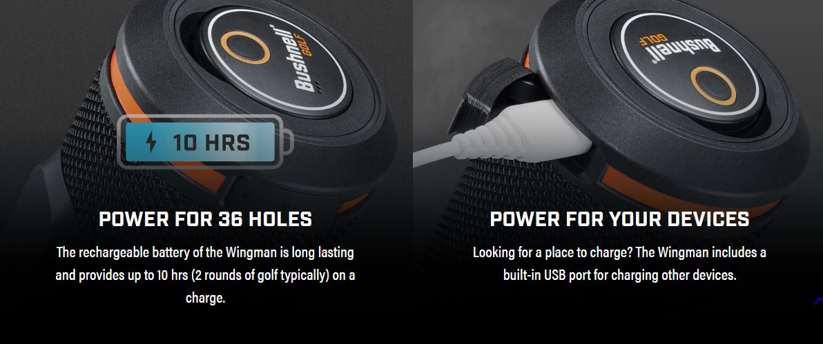 Unleash your inner DJ on the course with Wingman. This “first of its kind” product combines high quality audio with the ability to receive audible GPS distances, conveniently mounts to your cart bar via BITE magnetic technology